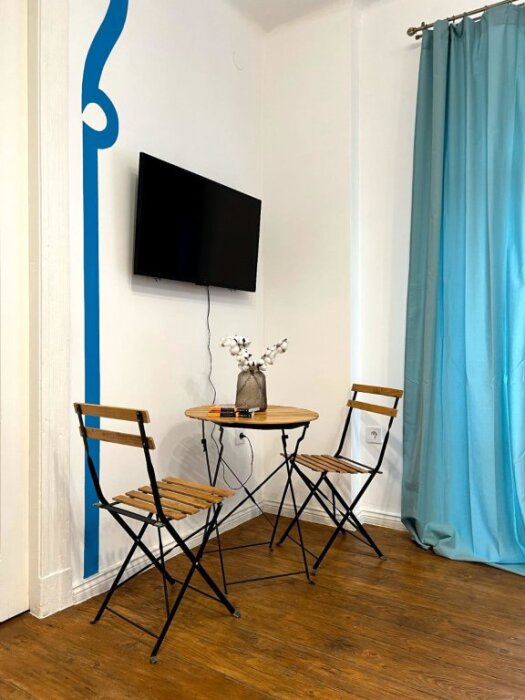 В апартаментах есть большая и удобная кровать с ортопедическим матрасом 160 на 200, раскладной диван со спальным местом 140 на 200. Максимальное количество гостей 4 и 1 ребенок до 7 лет. Возможно размещение ребенка до 7 лет бесплатно без предоставления места. Также имеется детский стульчик для кормления. Телевизор со смарт ТВ в спальне и гостиной, бесплатный Wi-Fi. Ванная комната с окном, в которой Вы найдете: гель для душа, шампунь, бальзам для волос, мыло для рук, чистые полотенца. Отдельный санузел.