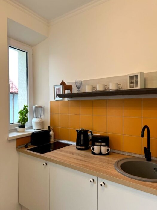 В кухне: стиральная машина с сушкой, где за час Вы постираете и высушите свои вещи. Микроволновая печь, холодильник, блендер, тостер, индукционная плита, чайник и вся необходимая посуда для приготовления пищи, а также соль, перец, сахар, подсолнечное масло.