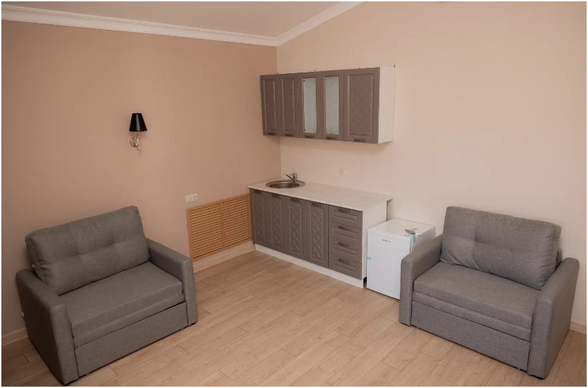 В распоряжении гостей номера разной вместимости. В номерах есть все, что необходимо для проживания: спальные места, прикроватные тумбочки, постельное белье и полотенца, телевизор, Wi-Fi, обеденный стол и стулья, посуда, гигиенические принадлежности, фен.