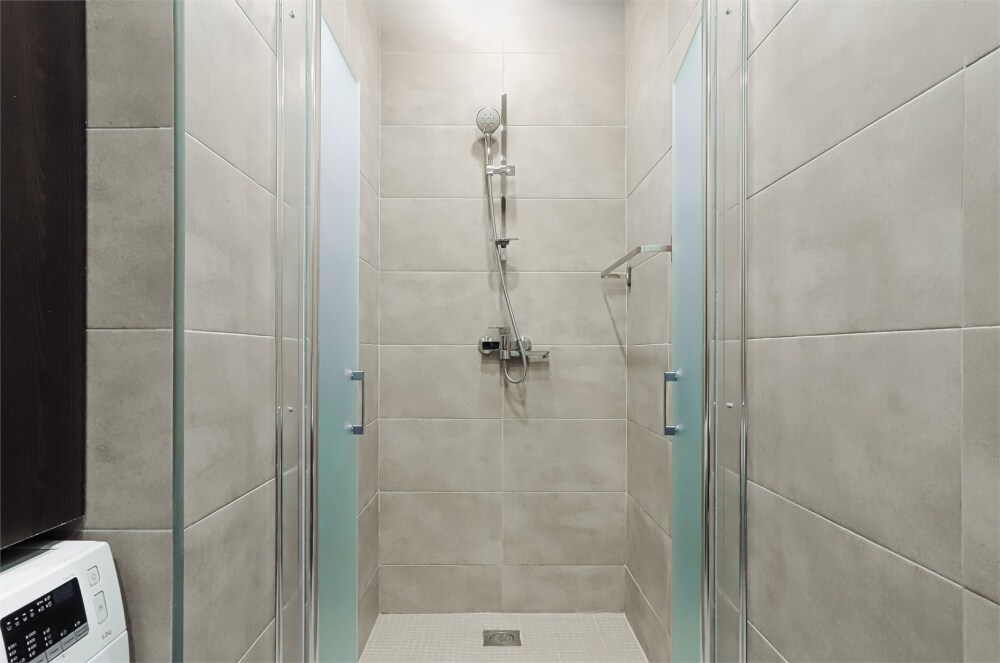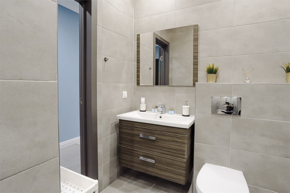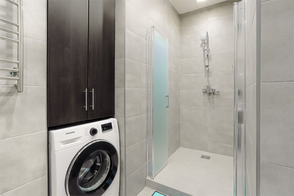 - Опрятная ванная комната с блестящими кранами и мягкими полотенцами, гигиеническими и косметическими наборами. Дополнительно присутствуют фен, утюг, сушилка.
