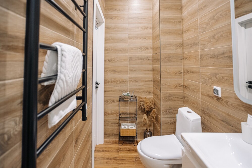 - Опрятная ванная комната с блестящими кранами и мягкими полотенцами, гигиеническими и косметическими наборами. Дополнительно присутствуют фен, утюг, сушилка.