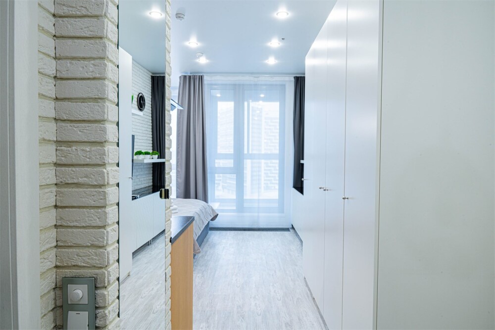 Студия под названием Gray-White, площадью 33 м², расположенная на 14-м этаже в ЖК Лайнер, в 5-ти минутах от метро ЦСКА, рассчитана на размещение до 2-х гостей и оснащена одной двуспальной кроватью.
