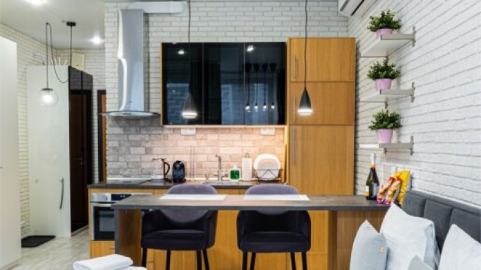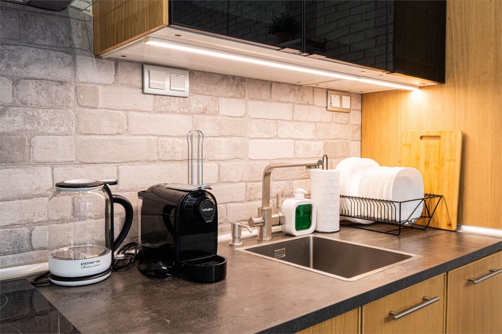- Стильная кухня в полной комплектации. Энергия творчества у удобной барной стойки — идеального уголка для работы, бесед или неспешного завтрака. Мини-бар позволит вкусно перекусить в перерыве между делами.