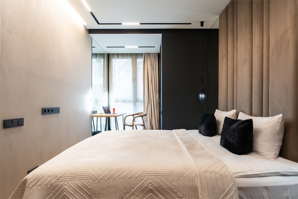 - Просторная кровать с удобным матрасом, постельным бельем из страйп-сатина, словно обнимает теплом, создавая обстановку для полного расслабления. Панорамные окна наполняют пространство светом и предлагают восхитительный вид на городской пейзаж. Скоростной