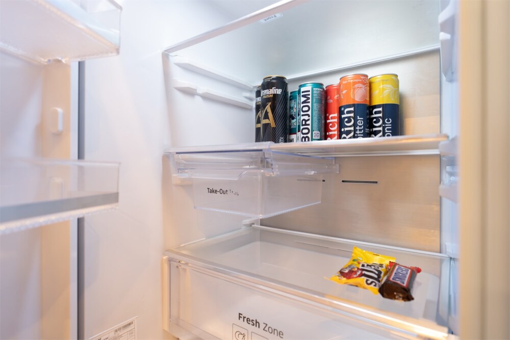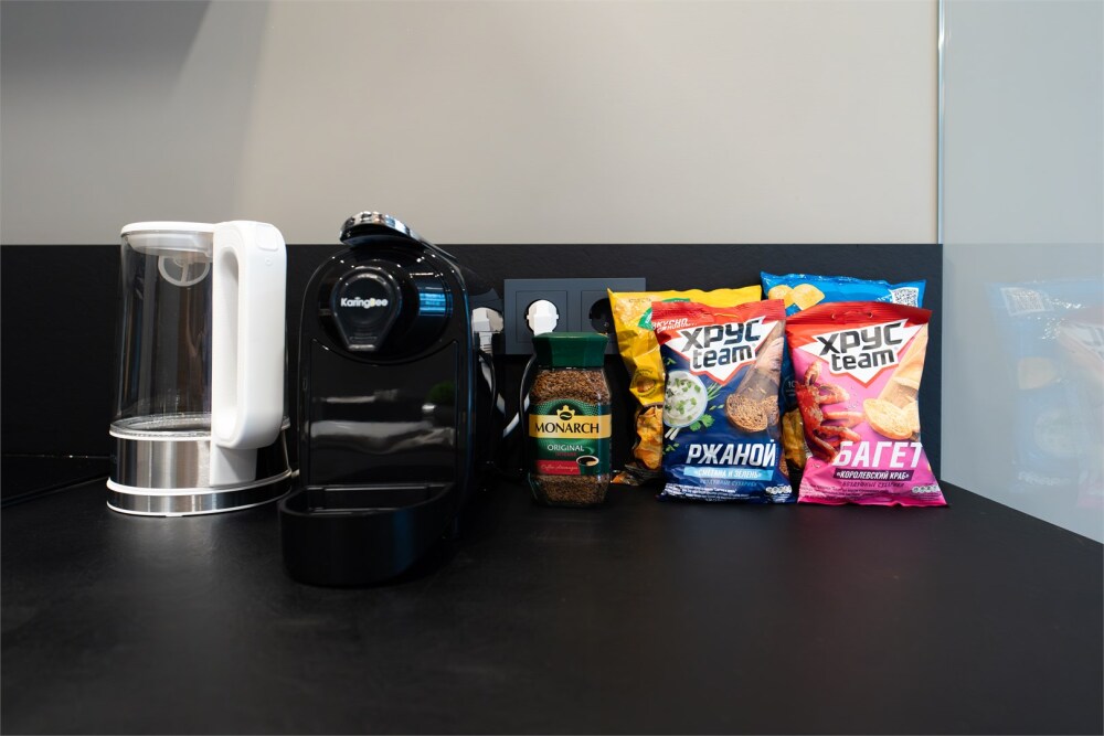 - Современная кухня в полной комплектации, словно приглашает к уютным завтракам или вечерним разговорам за бокалом вина. Мини-бар позволит вкусно перекусить в перерыве между делами.