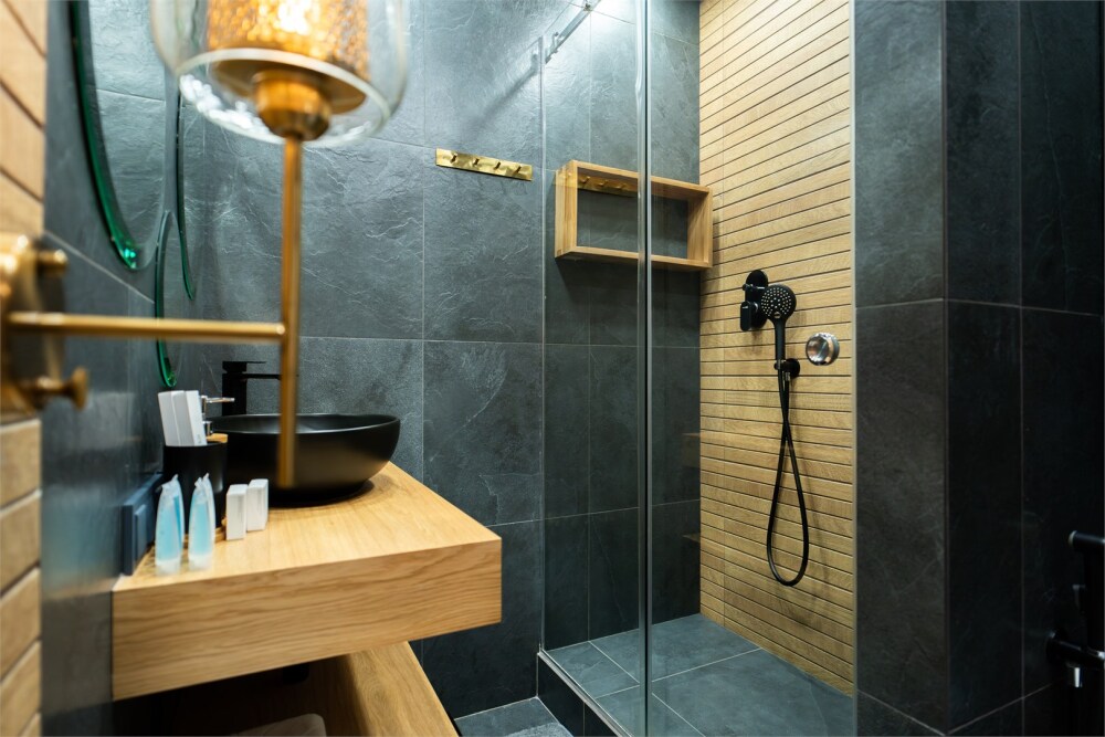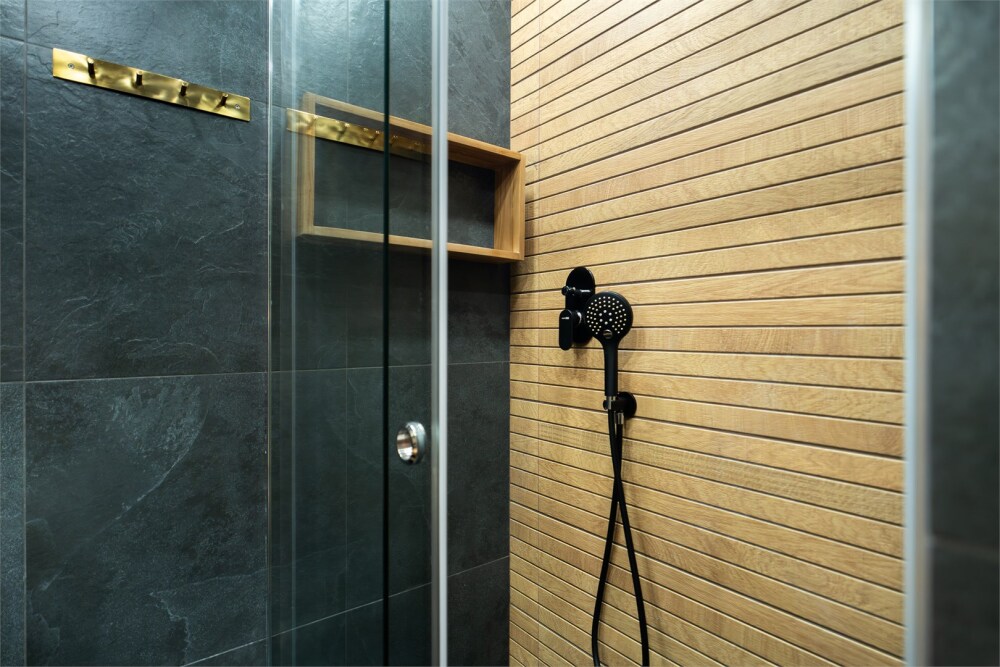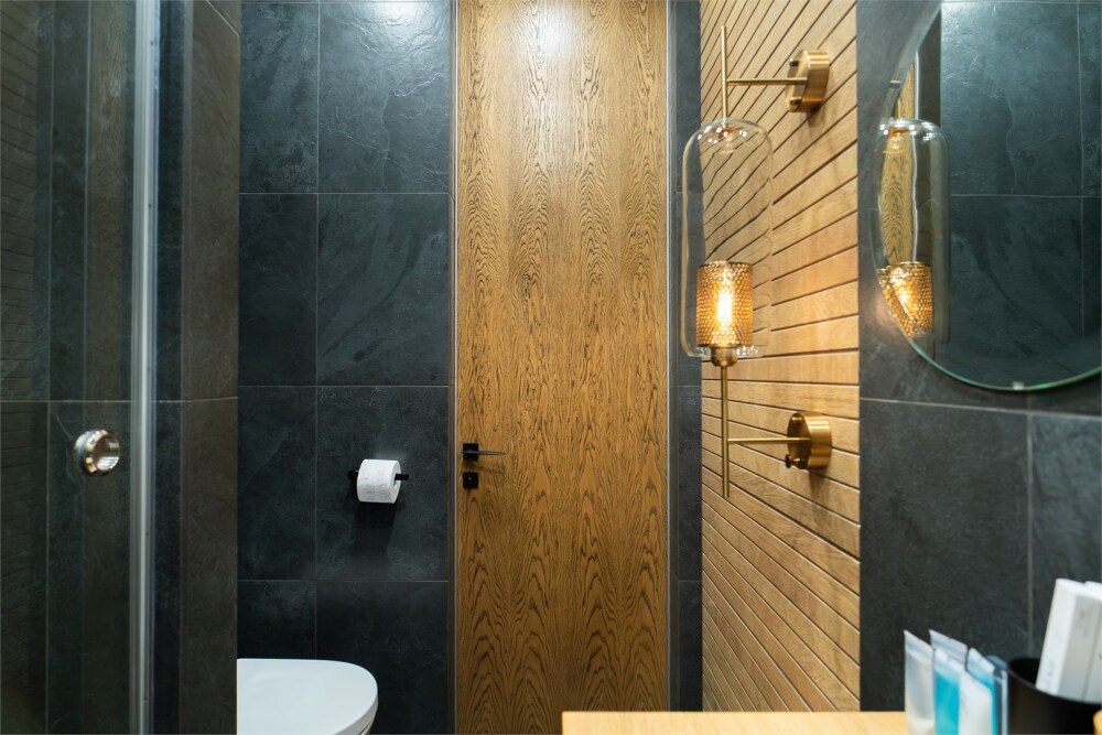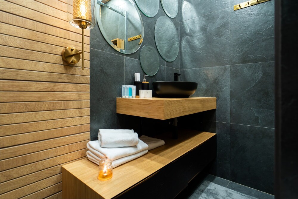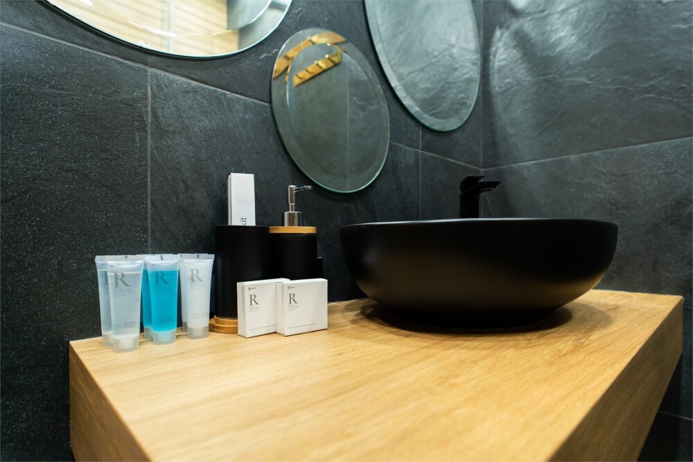 - Опрятная ванная комната с блестящими кранами и мягкими полотенцами, гигиеническими и косметическими наборами. Дополнительно присутствуют фен, утюг, сушилка.