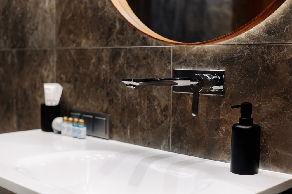 - Опрятная ванная комната с блестящими кранами и мягкими полотенцами, гигиеническими и косметическими наборами. Дополнительно присутствуют фен, утюг, сушилка.