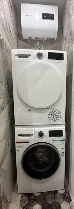 Спальные места: двуспальная кровать, дополнительное спальное место кресло-кровать. Есть оборудованная кухня: микроволновая печь, духовой шкаф, индукционная плита, посудомоечная машина, фильтр для очистки воды, холодильник. Ванная комната (душ), санузел, стиральная и сушильная машины, бойлер, телевизор, Wi-Fi, кондиционер.