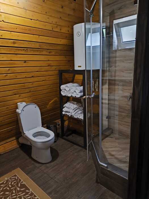 - Просторная ванная: душ, бойлер, полотенца, халаты, средства гигиены, фен.