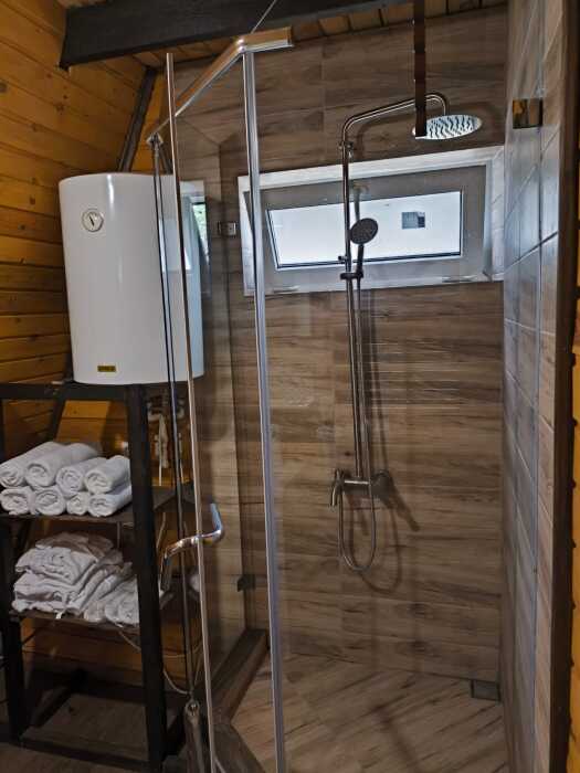 Стильный A-фрейм домик с панорамным остеклением, натуральным деревом в интерьере и настоящим горячим банным чаном. Уникальный опыт отдыха: тепло дерева, шум листвы и водная терапия прямо под открытым небом.