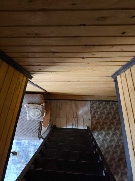 Много натурального дерева, мягкие ковры, кресло-качалка и камин.