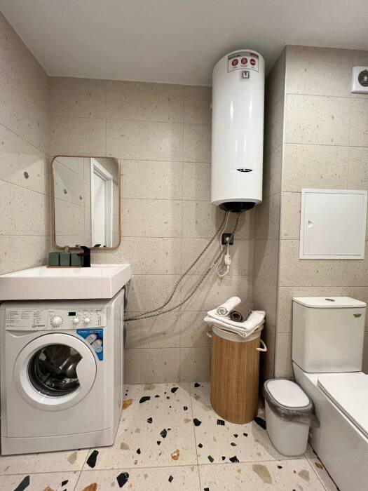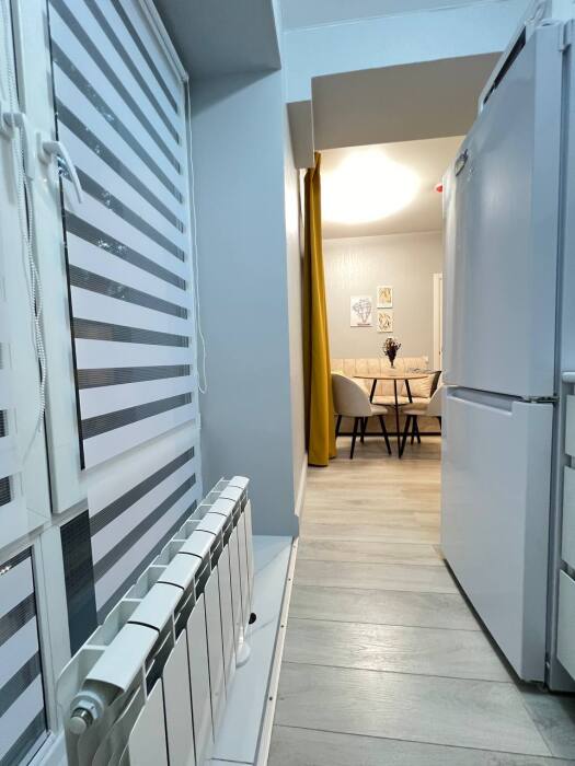 Апартаменты встретят Вас полностью оборудованной кухней и всем необходимым: плита, холодильник, микроволновая печь, электрочайник, фен, утюг, посуда, качественное постельное белье, бесплатный WI-FI!