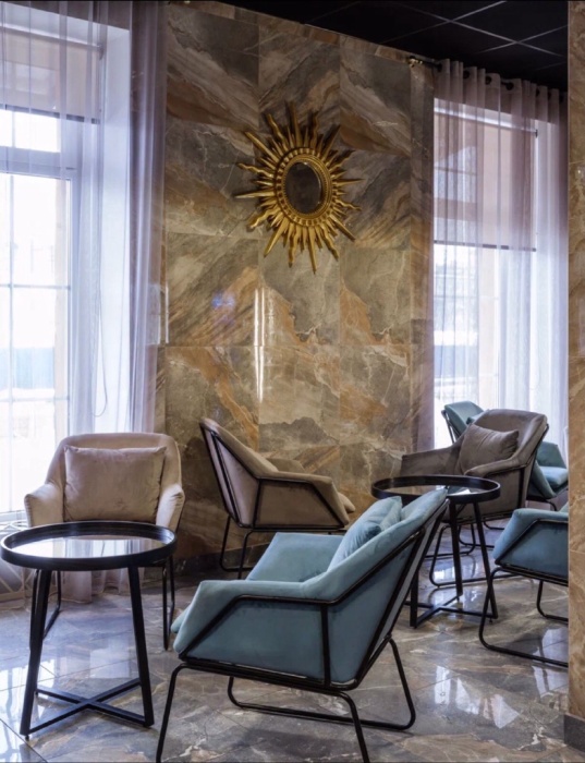 Монументальное здание сталинской постройки с красивой входной группой, прекрасное лобби с мягкими диванам и креслами, кофе аппаратом где можно назначить встречу, отдохнуть за чашечкой кофе.
