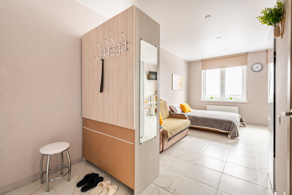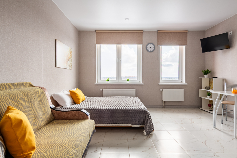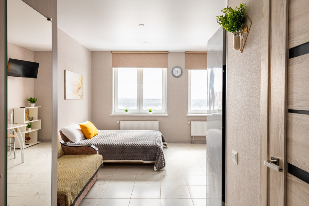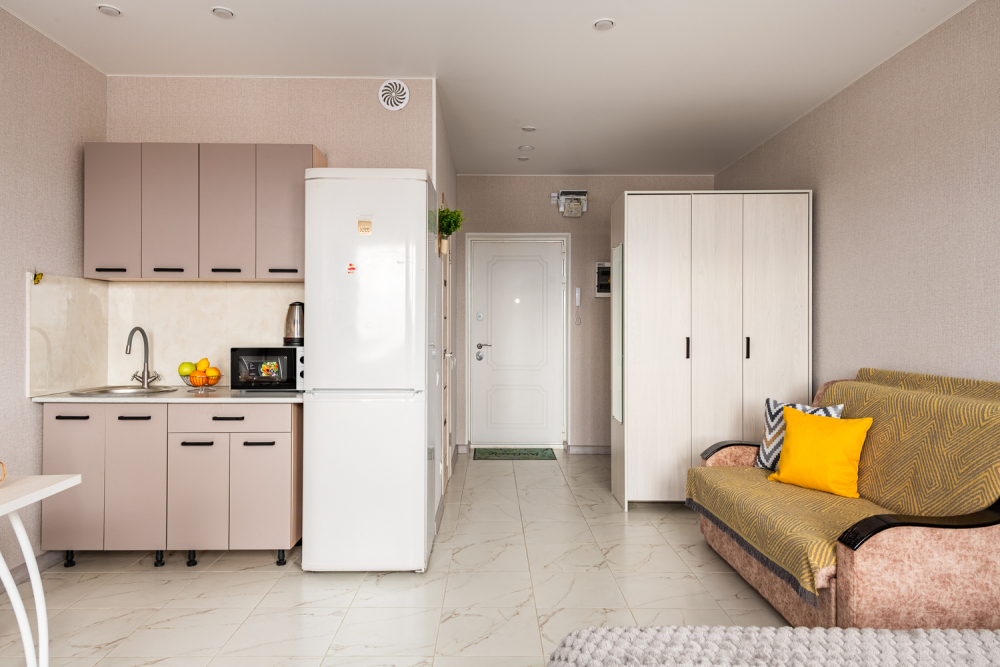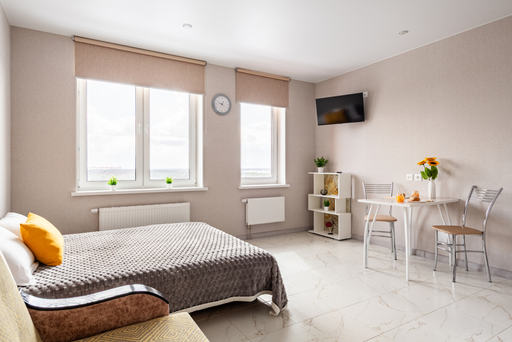 Телевизор с функцией смарт ТВ для разнообразных развлечений. Холодильник, плита, фен, утюг, стиральная машина - для вашего уюта и комфорта.