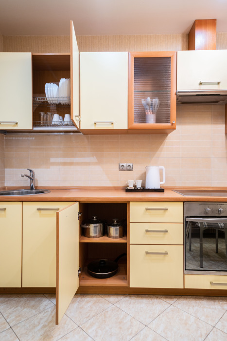 В квартире имеется всё необходимое для Вашего удобства и комфорта. Кондиционер, двуспальная кровать и раскладной диван (при необходимости предоставим доп.спальные места), полностью оборудованная кухня с обеденной зоной, wi-fi и жк-телевизор, белоснежное постельное бельё и махровые полотенца, а также набор ванных принадлежностей.