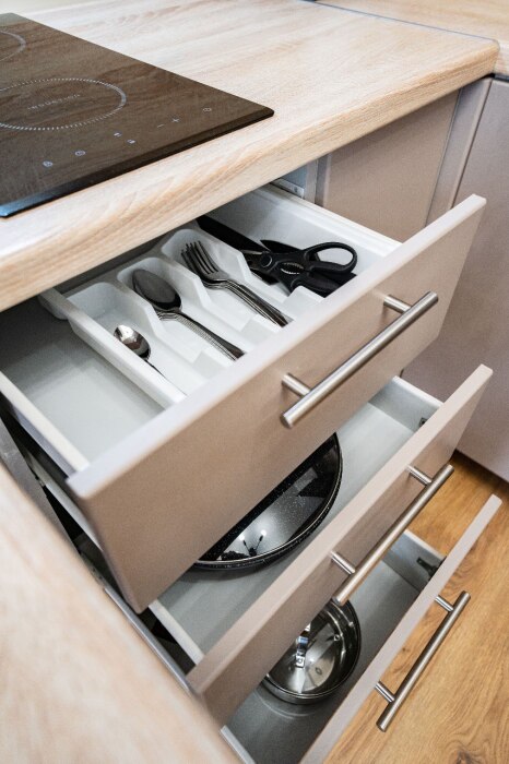 - Полностью оборудованная кухня с обеденной зоной.