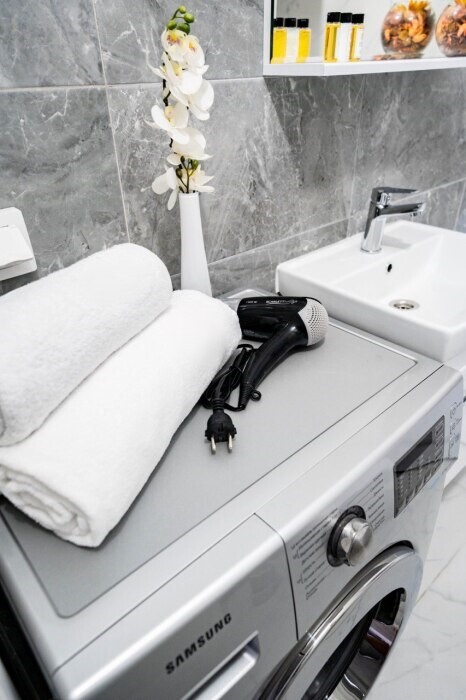 В квартире имеется всё необходимое для Вашего удобства и комфорта. Двуспальная кровать, полностью оборудованная кухня с обеденной зоной, wi-fi и жк-телевизор, белоснежное постельное бельё и махровые полотенца, а также набор ванных принадлежностей.