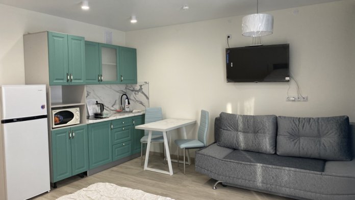 Студия оснащена мебелью и техникой необходимой для проживания. Бесплатный WIFI.Фото соответствует на 100%. Бесплатная парковка возле дома.