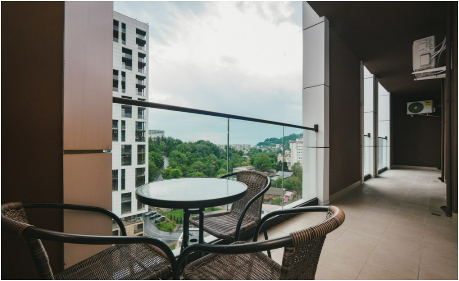 В каждой комнате телевизор смарт, на кухне посудомоечная машина, кофемашина, духовой шкаф, водонагреватель на случай внепланового отключения горячей воды, пылесос, качественное постельное белье, посуда. С огромной лоджии 11 этажа открываются шикарные виды на вечнозеленый район Дагомыс и во двор на детскую и спортивную площадки, чтобы Вы могли наблюдать за детьми. Кстати, деток можно спокойно отпустить играть во двор, так как территория закрытая, охраняемая и под видеонаблюдением.