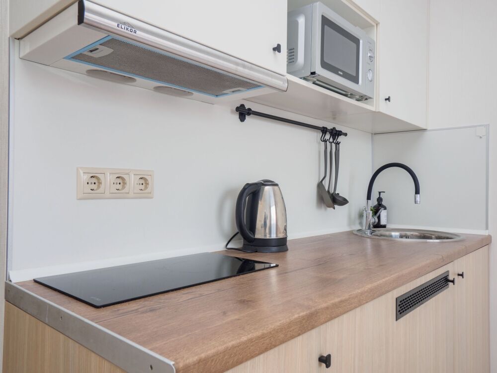 Уютная студия в 370 м от моря, рядом кафе, магазины, остановка общественного транспорта, станция ж/д «Известия». От аэропорта 15 минут на машине, от ж/д вокзала Адлер 10 минут.