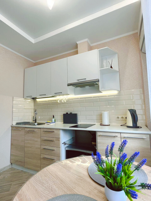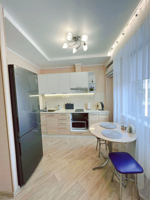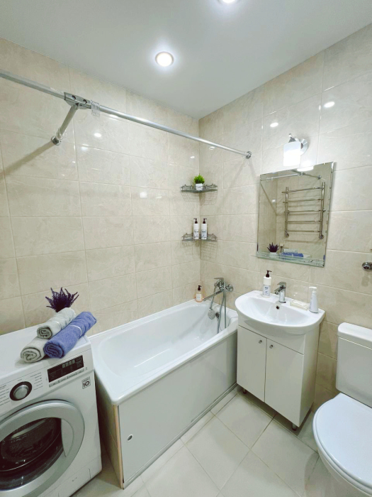 - холодильник, Smart TV, индукционная эл.плита, микроволновая печь, чайник, фен, утюг с гладильной доской, сушилка для белья, стиральная машинка, пылесос