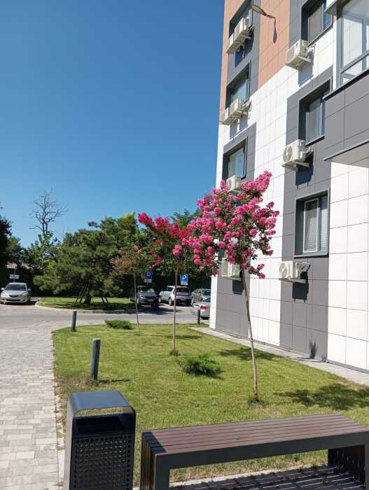 Большая парковка по периметру дома, велосипедные дорожки. Умный свет на всей территории. Набор современных игровых комплексов на детских площадках по возрастам: от малышей до старших детей. Красивое озеленение. Видеонаблюдение