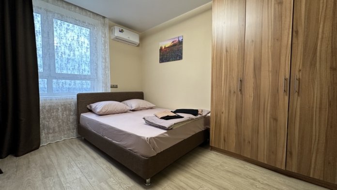 В квартире комфортно могут проживать 2 человека. Предусмотрено проживание на двуспальной кровати. Квартира оснащена всей техникой: ТВ, микроволновка, электроплита, стиральная машинка. Так же есть постельные принадлежности, полотенца, посуда, беспроводной интернет.