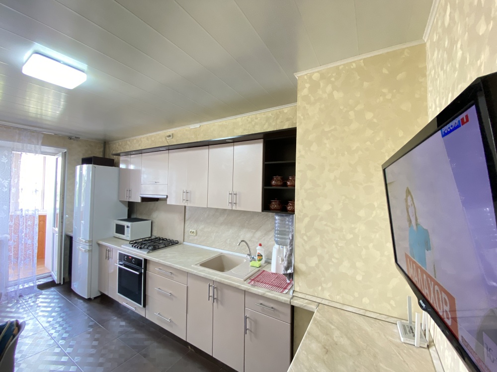 Для Вашего удобства квартира оснащена всем необходимым: двуспальная кровать, два двуспальных дивана; чистое постельное белье и полотенце; скоростной интернет wi-fi, телевизор, кабельное телевидение, стиральная машина, фен, утюг. На кухне есть вся необходимая посуда для приготовления домашней еды, холодильник, СВЧ печь. Размещение до 6 человек (2+2+2).