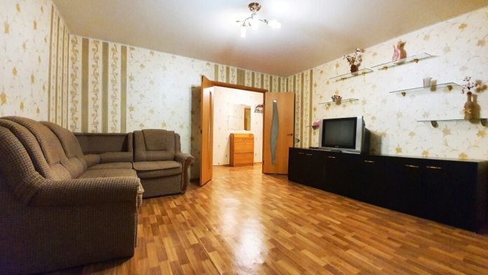 Просторная двухкомнатная квартира (60 кв.м). Оснащена всей необходимой бытовой техникой, есть Wi-Fi, постельные принадлежности и полотенца. Спальные места: 2 спальная кровать в спальне, 2 спальный диван в зале, 2 спальный диван на кухня, то есть у каждого может быть по комнате. Кухня очень просторная.