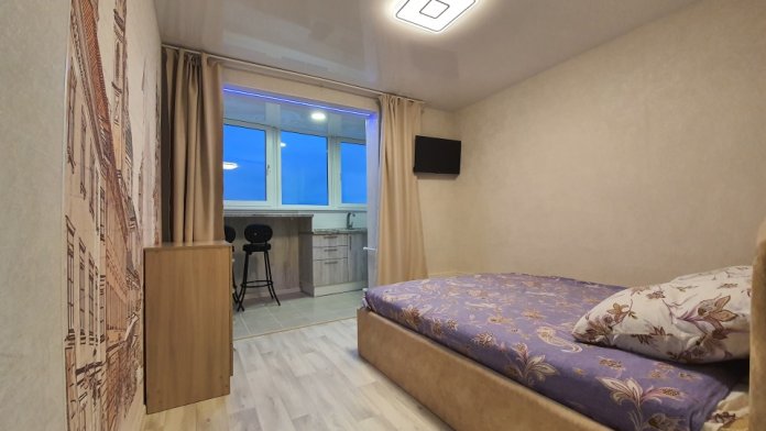 В квартире комфортно могут проживать 6 человека. Предусмотрено для проживания две односпальные кровати с матрасом Ascona (можно трансформировать в двуспальную кровать), а так же два двуспальных дивана. Квартира оснащена всей техникой: ТВ в комнате и кухне, стиральная машинка, микроволновка, плита. Так же есть постельные принадлежности, полотенца, посуда, беспроводной интернет. В доме стабильно работает лифт.