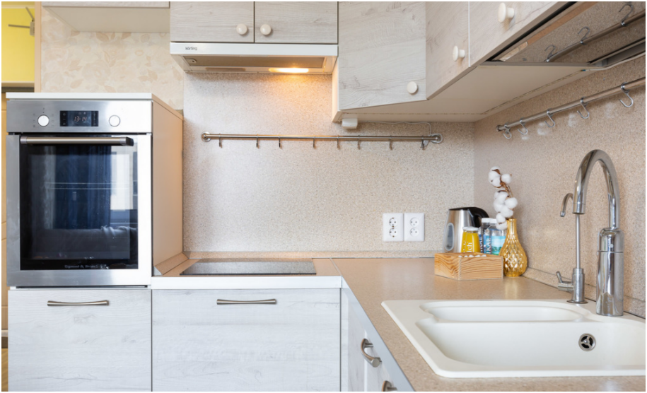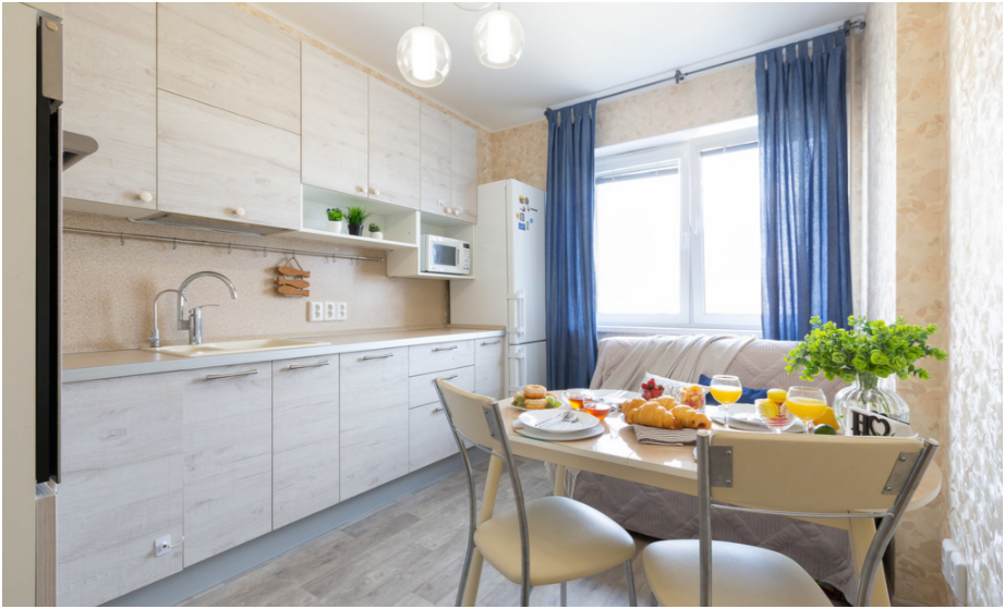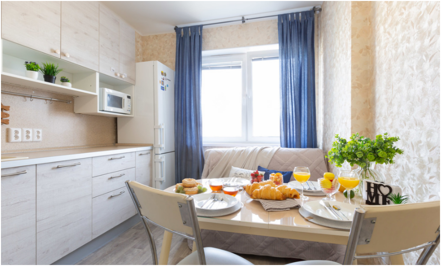 Кухня: плита, микроволновка, духовка, чайник, холодильник, мини-бар, набор посуды и все необходимые принадлежности для приготовления пищи, чай/кофе, соль, сахар, растительное масло, специи, минеральная вода.
