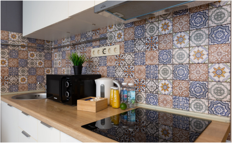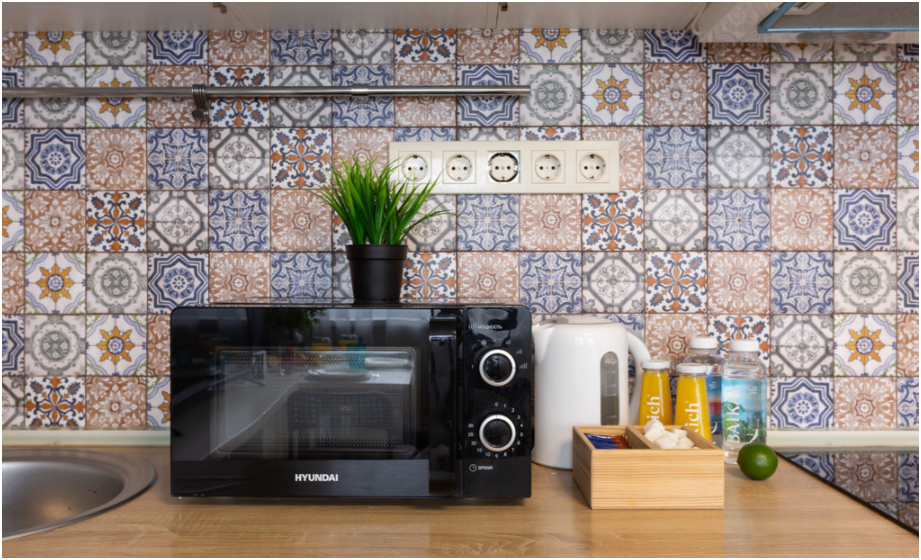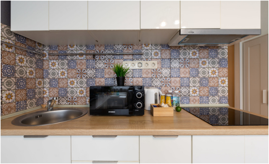 Кухня: плита, микроволновка, вытяжка, чайник, холодильник, мини-бар, набор посуды и все необходимые принадлежности для приготовления пищи, чай/кофе, соль, сахар, растительное масло, специи, минеральная вода.