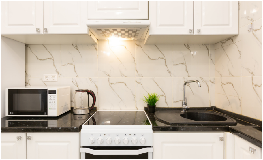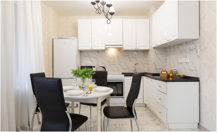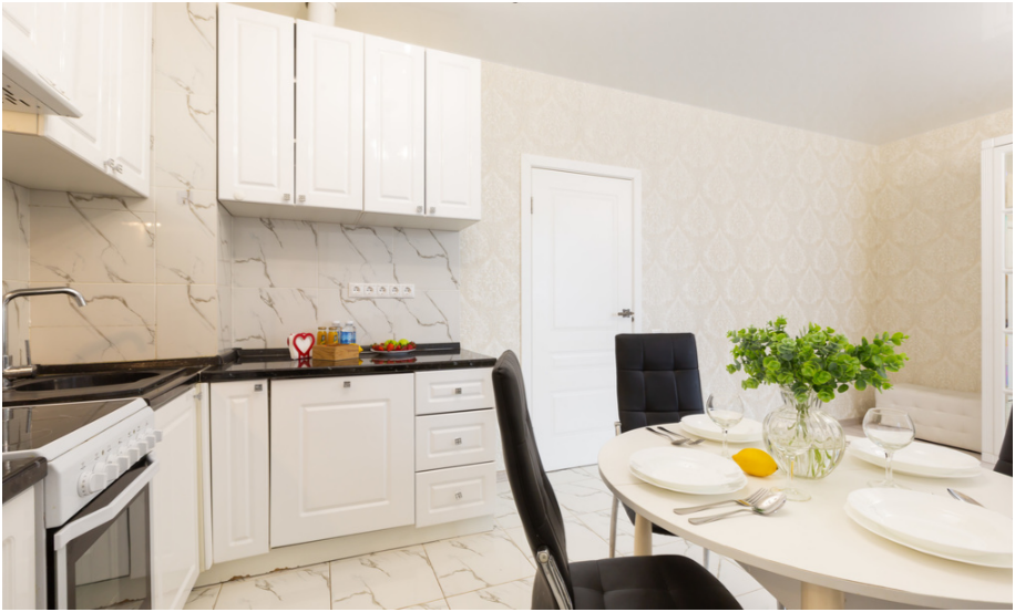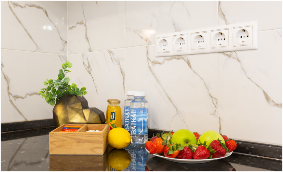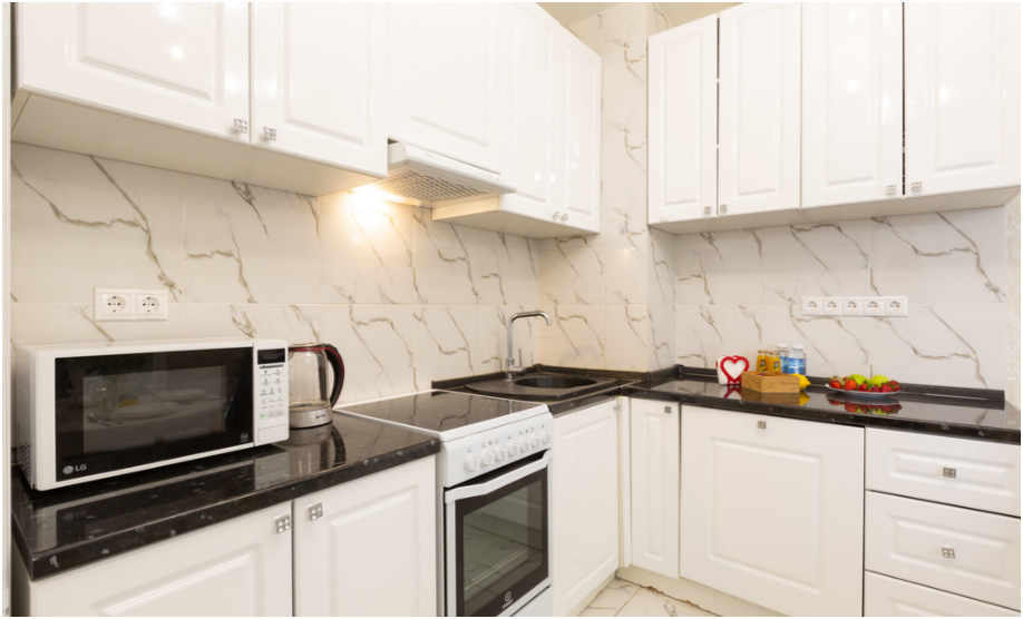 Кухня: плита, микроволновка, духовка, вытяжка, посудомоечная машина, чайник, холодильник, мини-бар, набор посуды и все необходимые принадлежности для приготовления пищи, чай/кофе, соль, сахар, растительное масло, специи, минеральная вода.