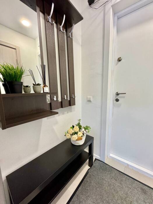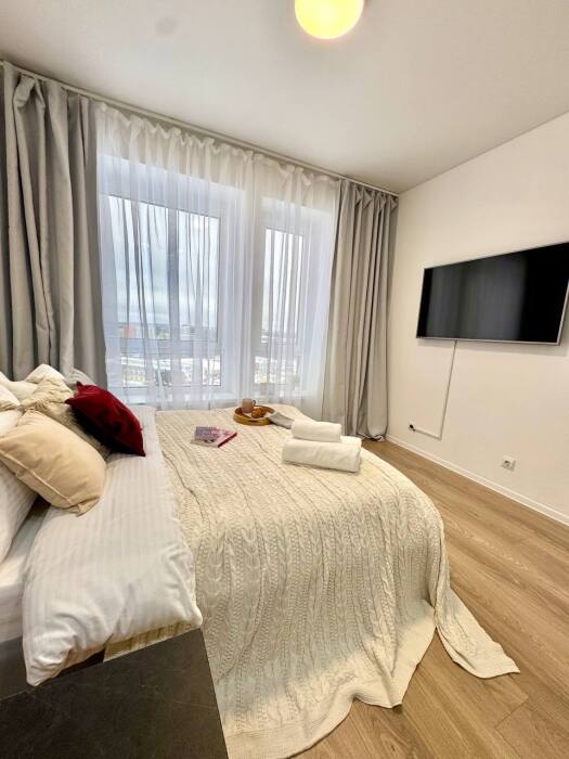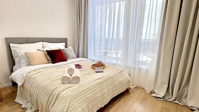 В квартире есть все необходимое для проживания 2-х человек: широкая двуспальная кровать с ортопедическим матрасом (160х200),плотные шторы портьеры блекаут для вашего комфортного сна, вместительный шкаф для одежды, Wi-Fi, Smart TV, гладильная доска, утюг, сушилка, свежее качественное постельное белье, комплект мягких полотенец.