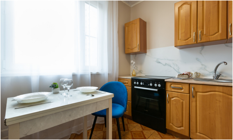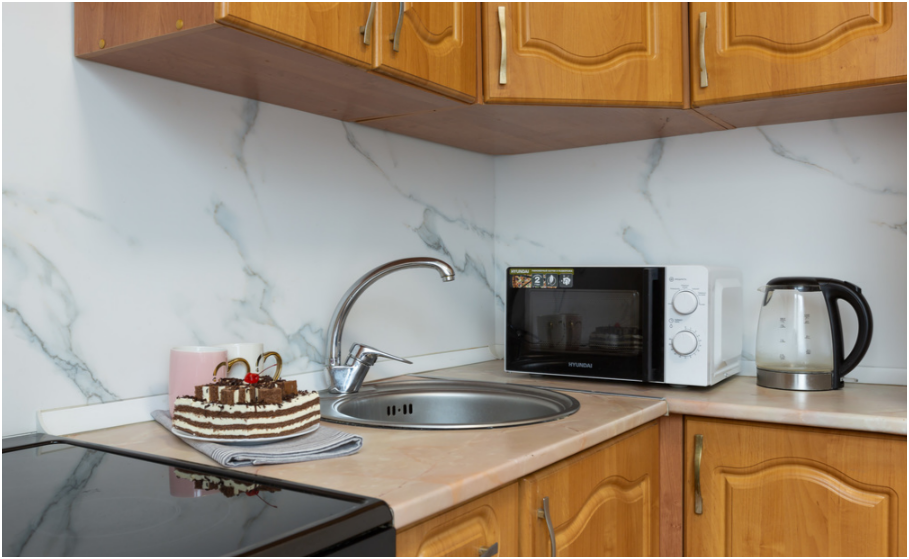 Кухня: плита, микроволновка, духовка, чайник, холодильник, мини-бар, набор посуды и все необходимые принадлежности для приготовления пищи, чай/кофе, соль, сахар, растительное масло, специи, минеральная вода.