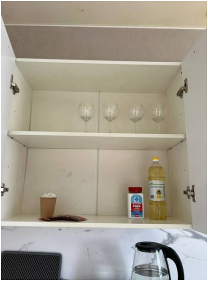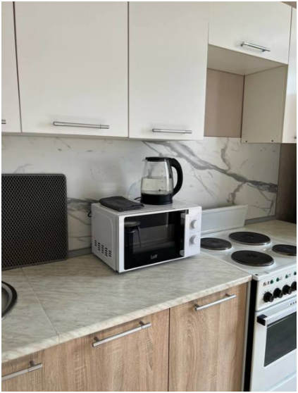 Кухня: плита, микроволновка, духовка, чайник, холодильник, набор посуды и все необходимые принадлежности для приготовления пищи, чай/кофе, соль, сахар, растительное масло, специи, минеральная вода.