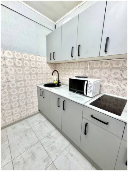 В квартире есть все необходимое для проживания 7-ти человек. Кухня: плита, микроволновка, духовка, вытяжка, чайник, холодильник, мини-бар, набор посуды и все необходимые принадлежности для приготовления пищи, чай/кофе, соль, сахар, растительное масло, специи, минеральная вода.