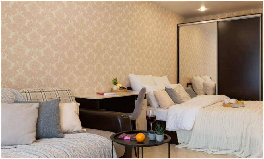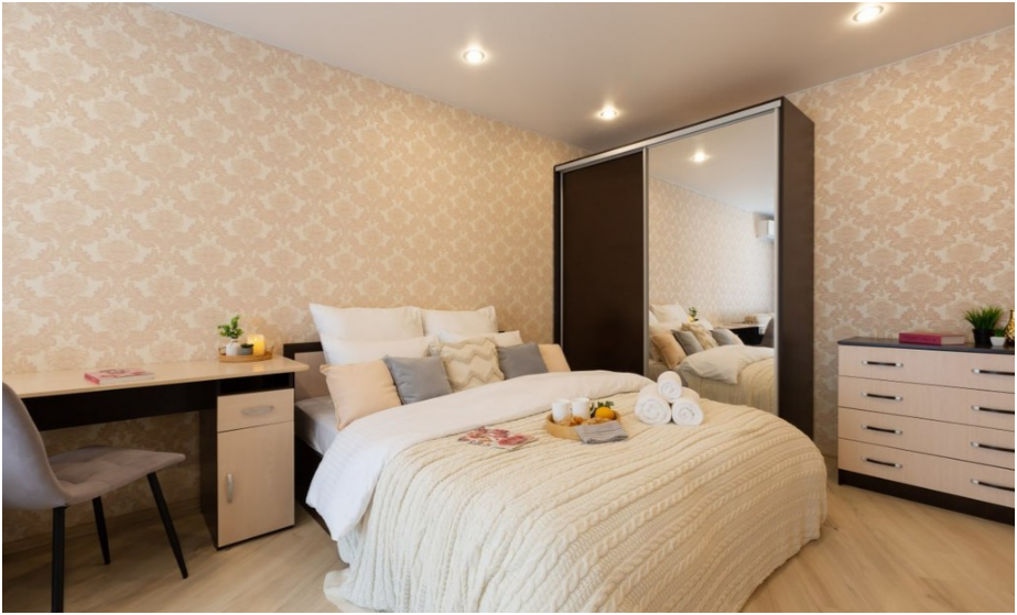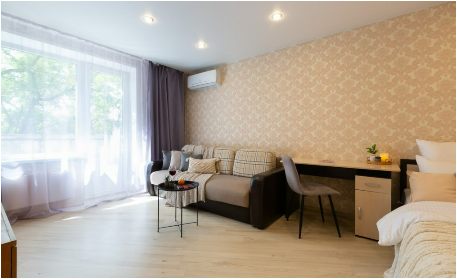 В квартире есть все необходимое для проживания 4-х человек: широкая двуспальная кровать с ортопедический матрасом с независимыми пружинами (160х200), двуспальный диван (160х200), плотные шторы портьеры блекаут для Вашего комфортного сна, вместительный шкаф для одежды, рабочее место, кондиционер, Wi-Fi, кабельное TV, гладильная доска, утюг, сушилка, свежее качественное постельное белье, комплект мягких полотенец.