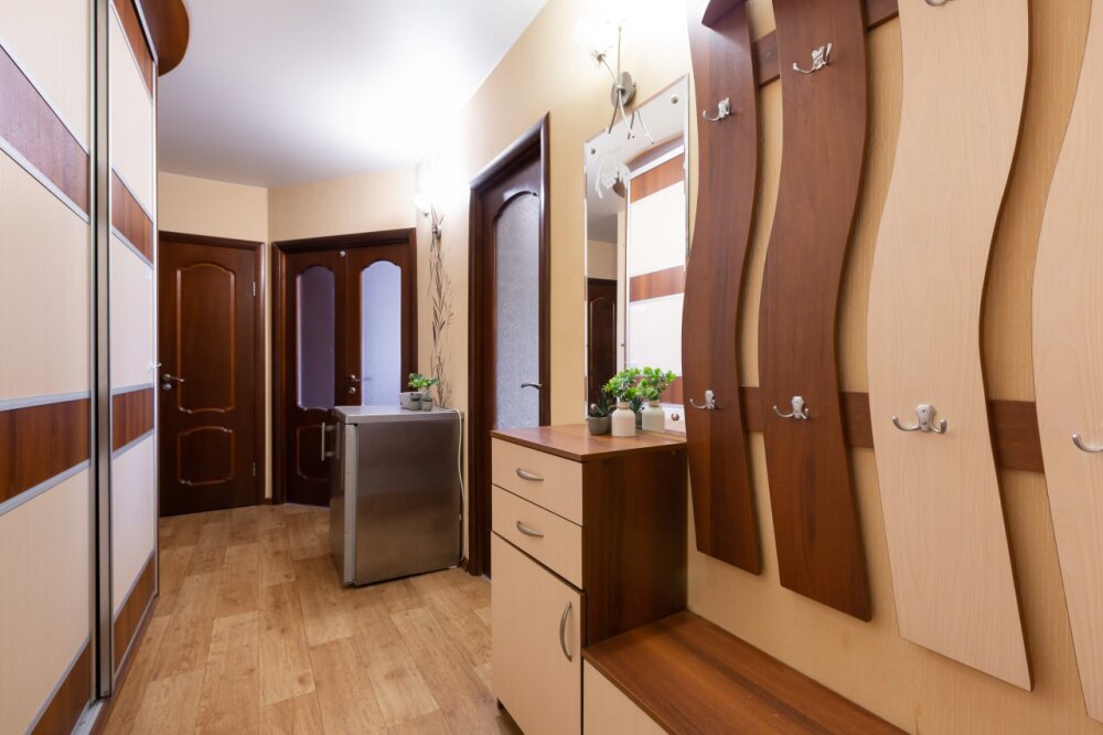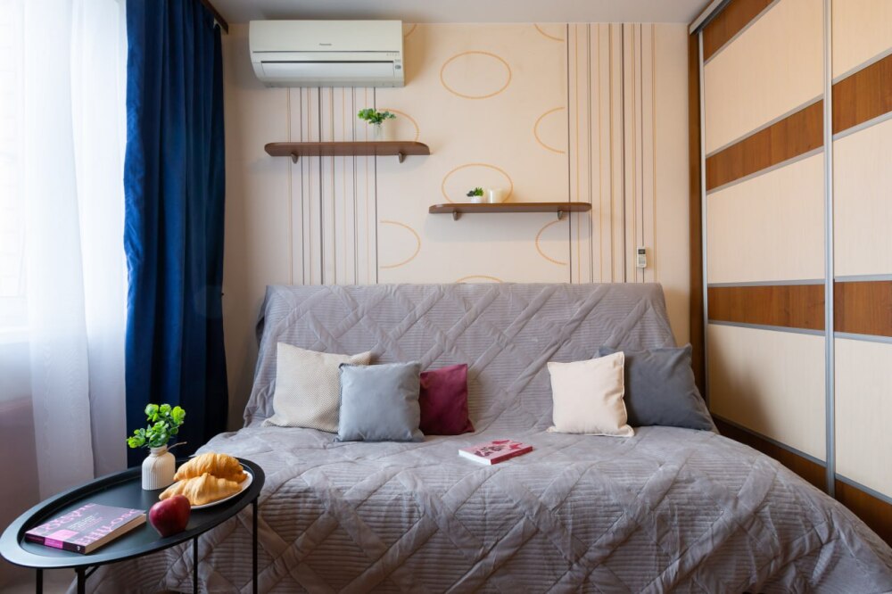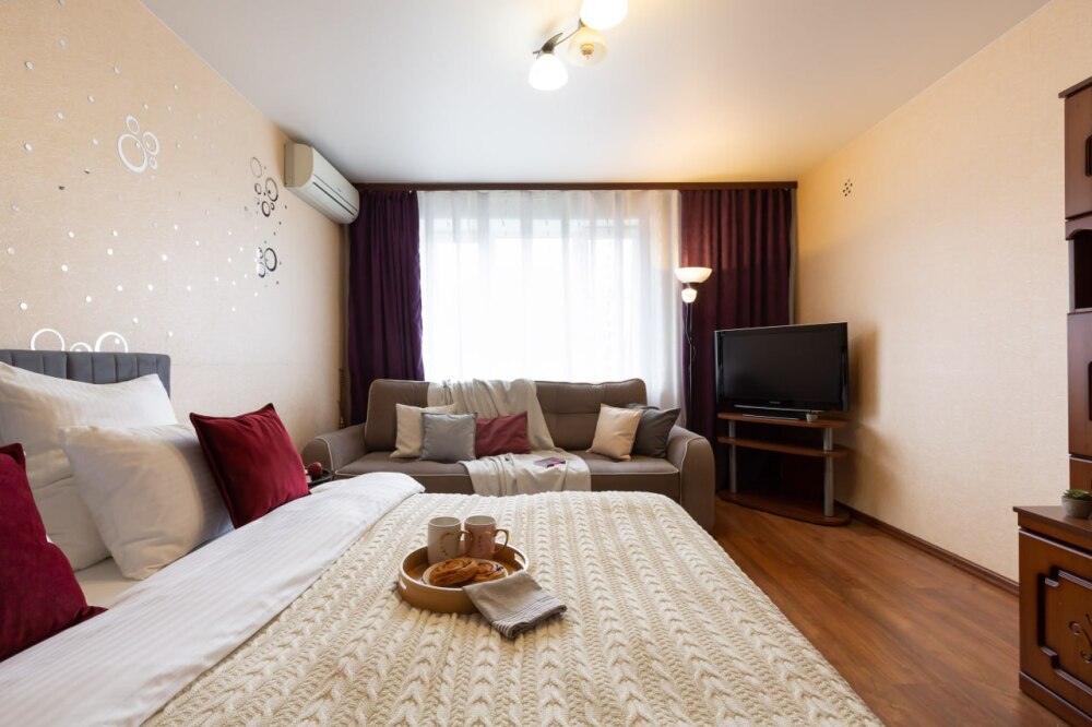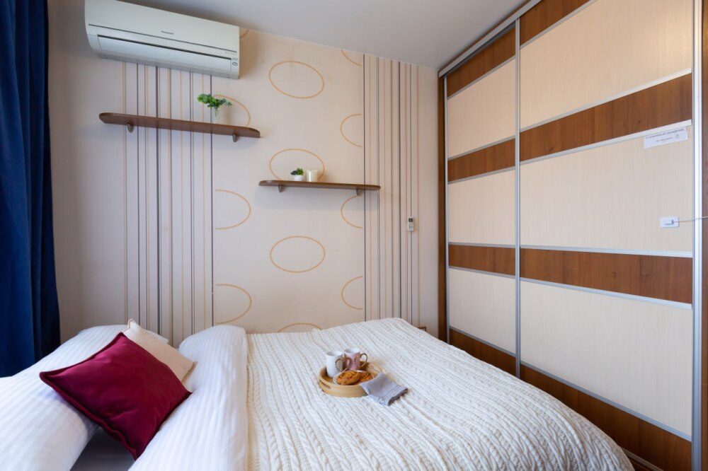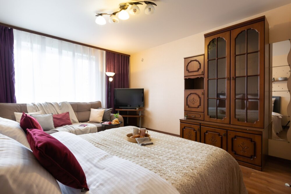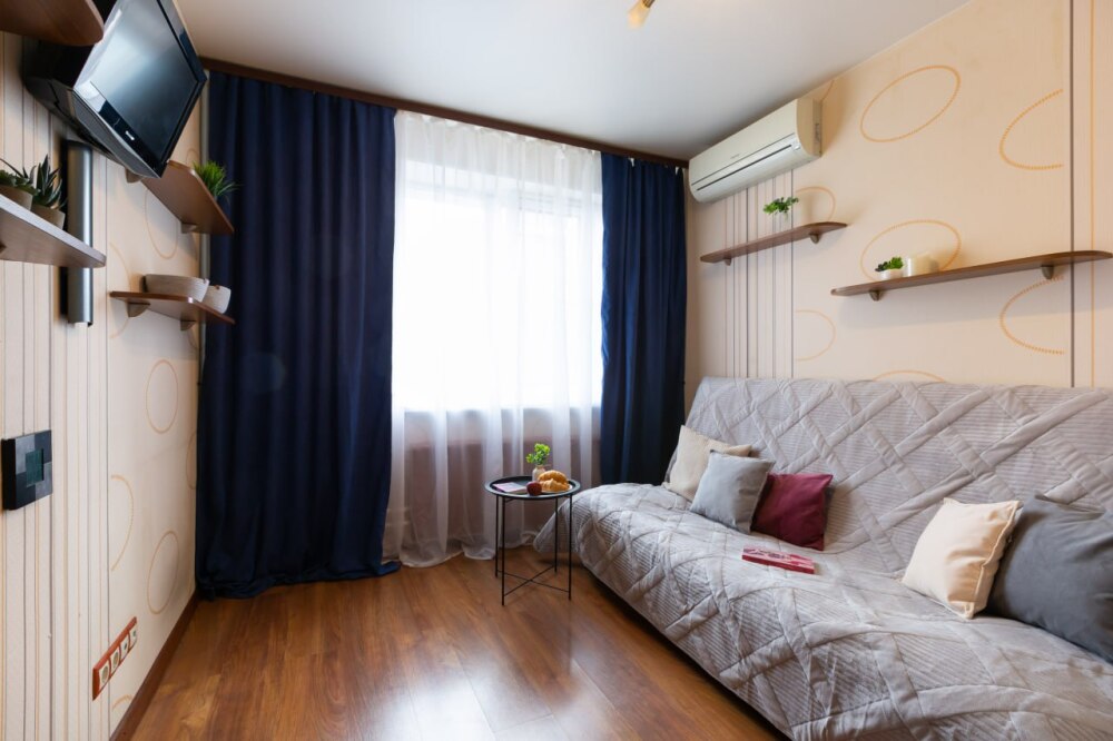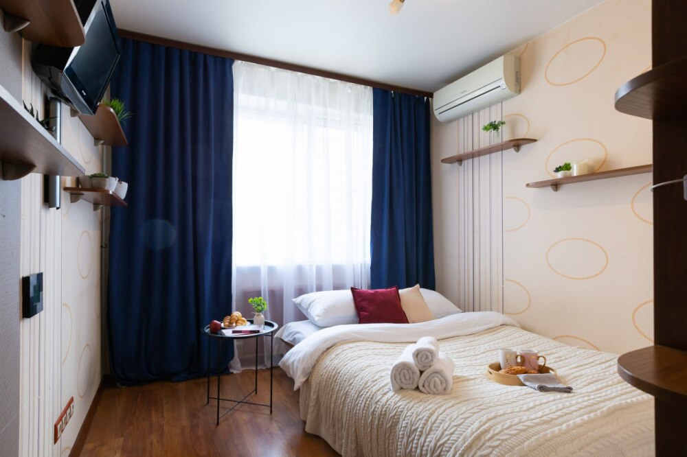 В квартире есть все необходимое для проживания 7-ми человек: широкая двуспальная кровать с ортопедический матрасом и независимыми пружинами (160х200), двуспальный диван - 2 шт. (160х200), односпальное кресло (70х200), плотные шторы портьеры блекаут для Вашего комфортного сна, вместительный шкаф для одежды, кондиционер, Wi-Fi, кабельное TV, гладильная доска, утюг, сушилка, свежее качественное постельное белье, комплект мягких полотенец.