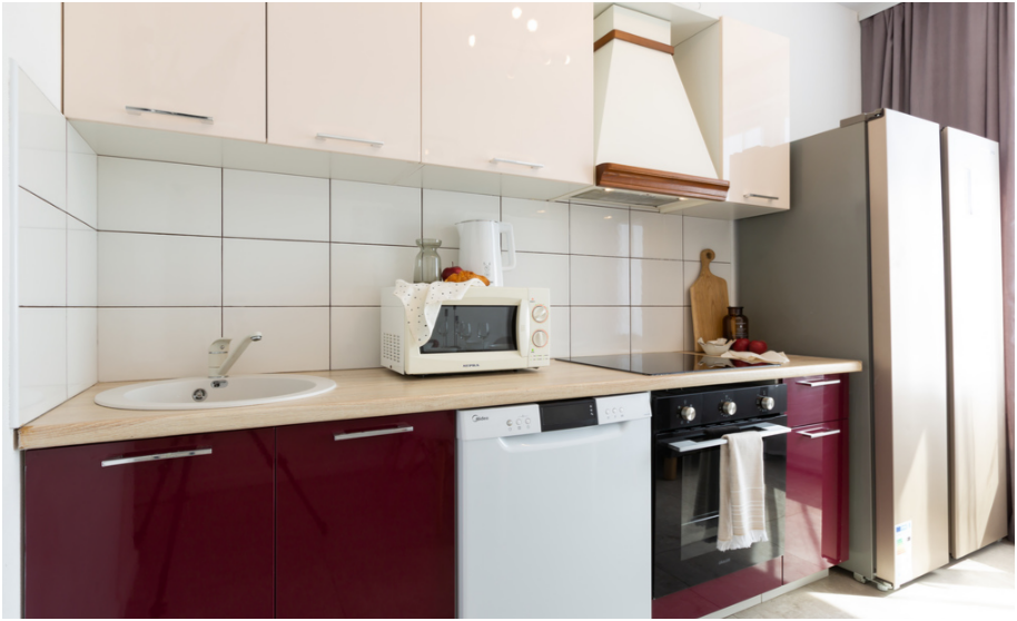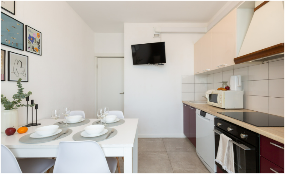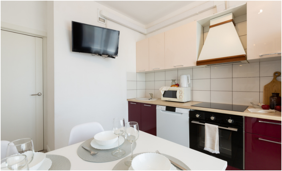 Кухня: плита, микроволновка, духовка, вытяжка, посудомоечная машина, чайник, холодильник, мини-бар, набор посуды и все необходимые принадлежности для приготовления пищи, чай/кофе, соль, сахар, растительное масло, специи, минеральная вода.