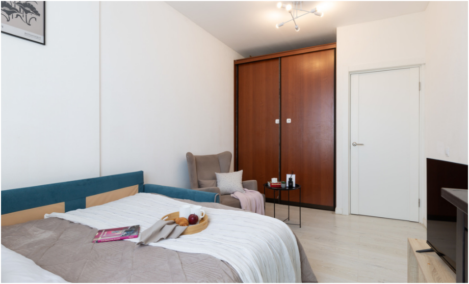 В квартире есть все необходимое для проживания 4-х человек: двуспальный диван-кровать (160х200), двуспальный надувной матрас (160х200), кресло-кровать (100х200), плотные шторы портьеры блекаут для Вашего комфортного сна, вместительный шкаф для одежды, Wi-Fi, Smart TV/кабельное TV, гладильная доска, утюг, сушилка, свежее качественное постельное белье, комплект мягких полотенец.