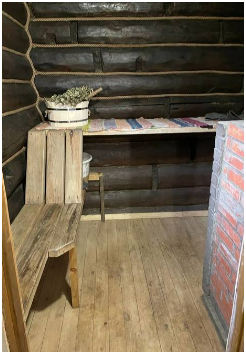 На первом этаже: веранда, кухня-гостиная, душевая и парилка. Кухня укомплектована посудой и техникой (холодильник, микроволновая печь, чайник, ИК-плитка на 2 конфорки).
