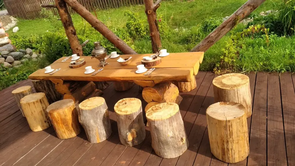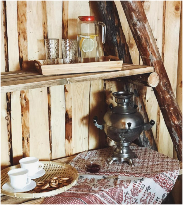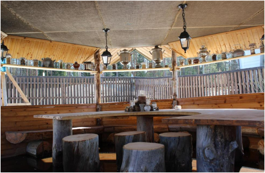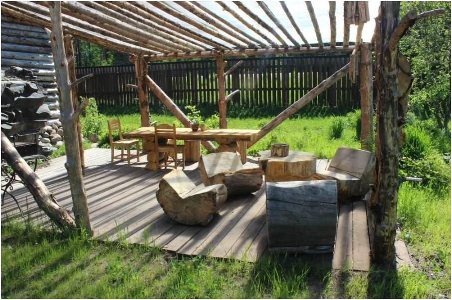 - Зона барбекю (пергола с мангалом, беседка с грилем, хижина с костровищем, аутентичный чум с камином в центре и бивуак под открытым небом).