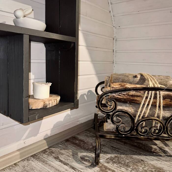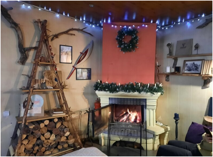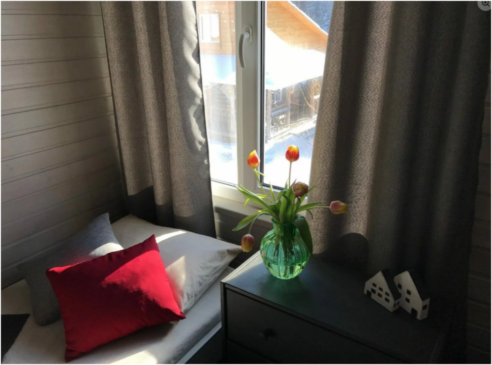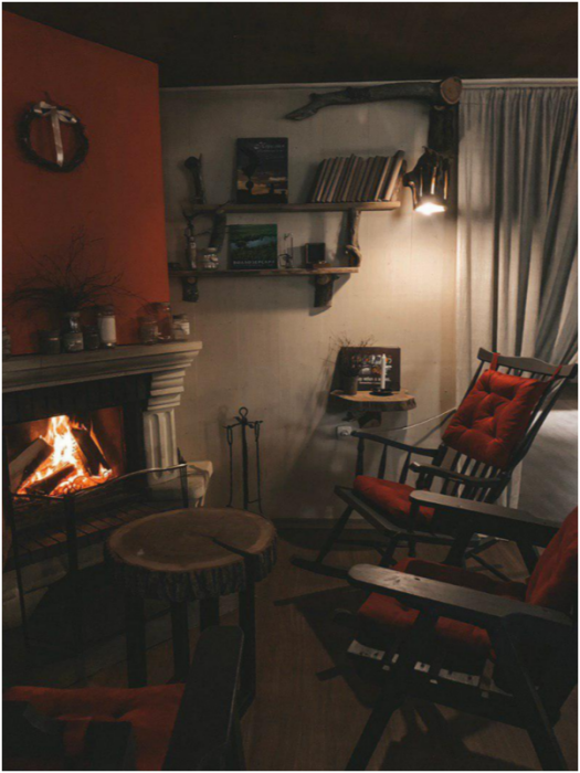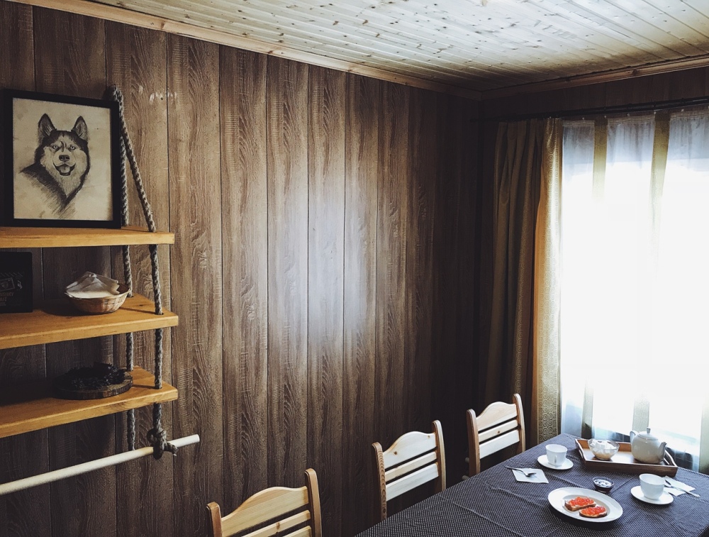 Уютный домик для большой компании с общей гостиной зоной и каминным залом. В Доме Полярника 6 комнат. Есть 2 благоустроенных туалета с горячей водой, душ.