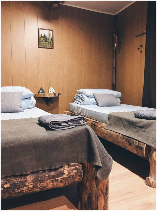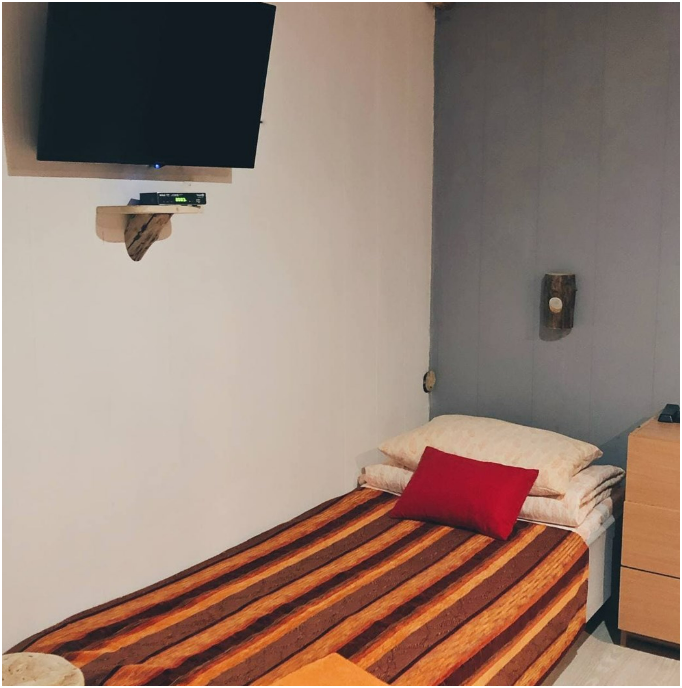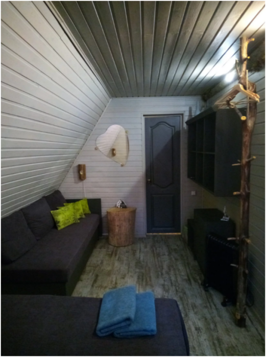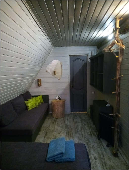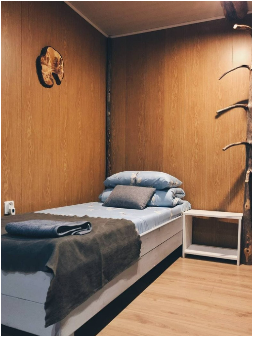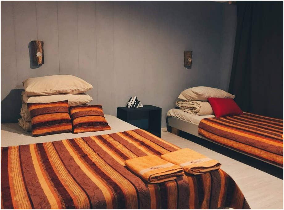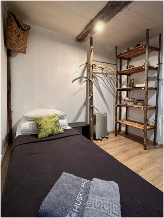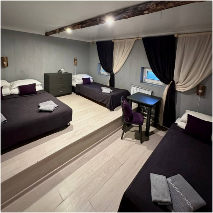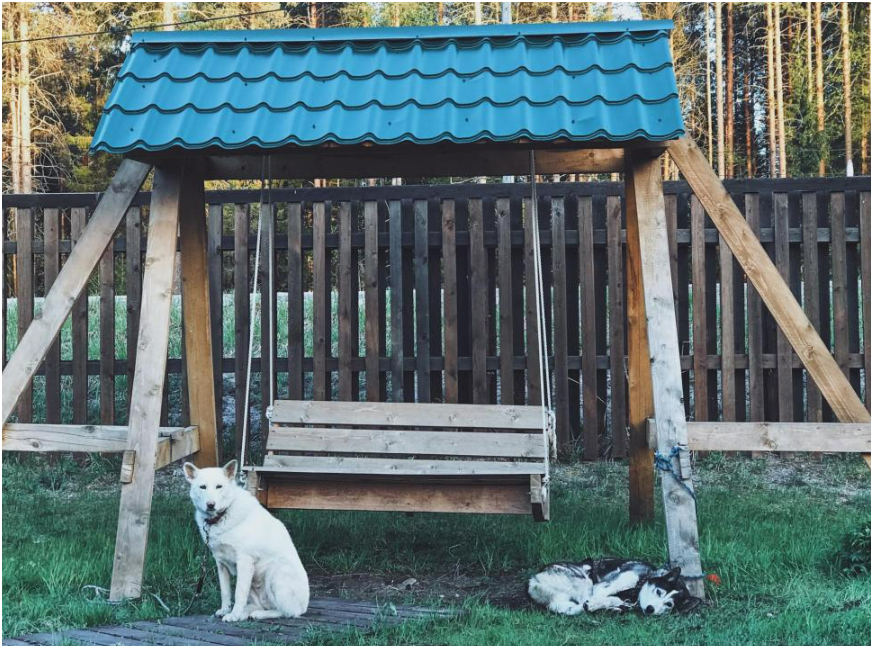 - Дом Хаски - 4 комнаты (13 человек), подвесное кресло-качели на веранде и необычный декор снаружи. Есть благоустроенный туалет с горячей водой, душ и мини-кухня. Обычно в Доме Хаски селятся те, кто предпочитает готовить самостоятельно.