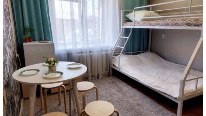 Студия находиться на первом этаже общежития, соседи спокойные. Коридор требует ремонта, на удобстве проживания в комнате это не сказывается и компенсируется сравнительно низкой ценой. От 5 дней действует скидка.