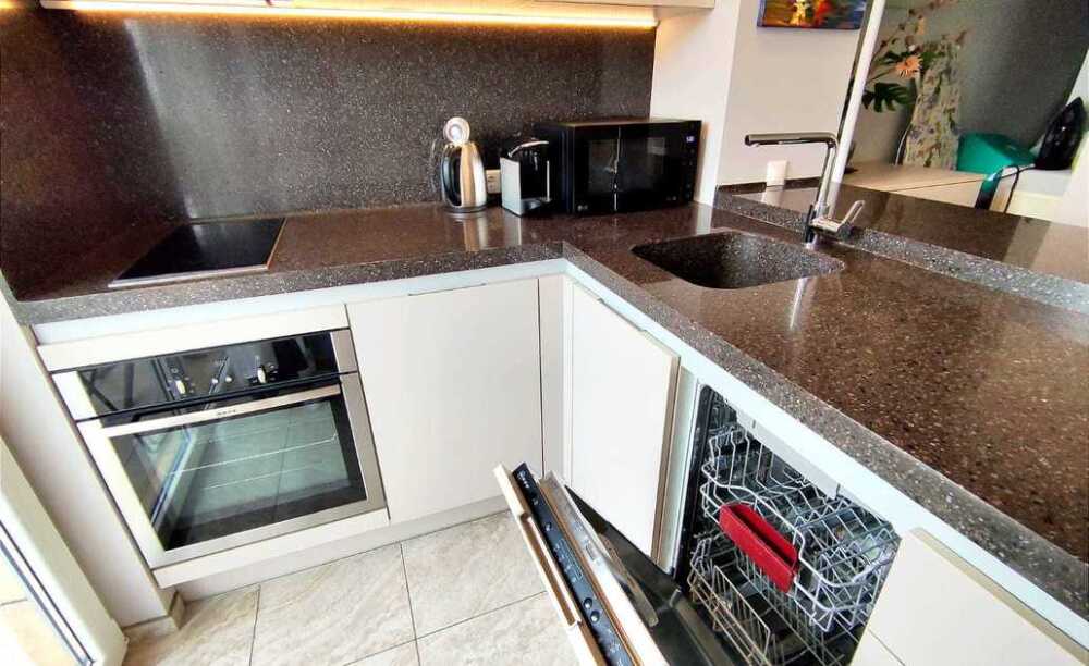 - полноценная кухня-студия с посудомоечной машиной и всеми необходимыми принадлежностями для приготовления пищи.