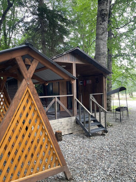 В каждом домике Вас ждет чистота, порядок и все необходимое для проживания. На территории комплекса располагаются большие беседки, детская площадка, качели и мангальная зона, так же Вы сможете прогуляться по хвойному лесу и насладиться ароматом и красотой величественных деревьев.