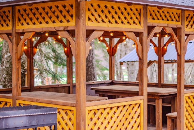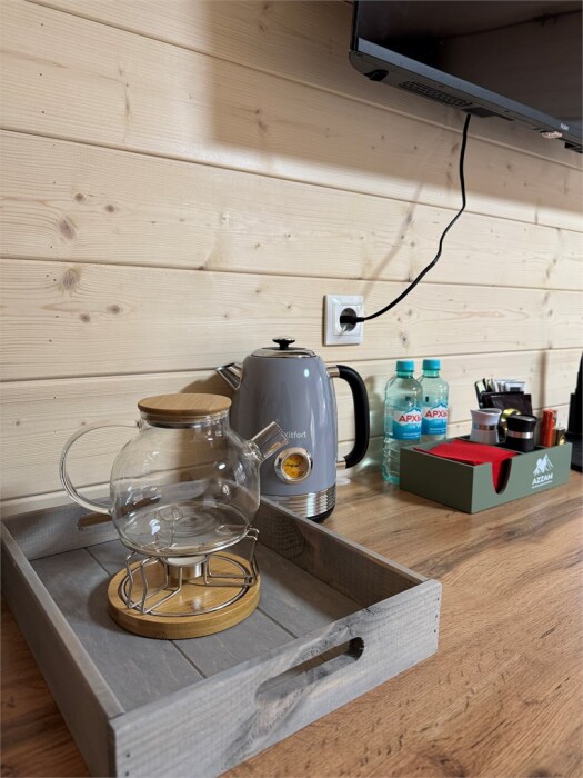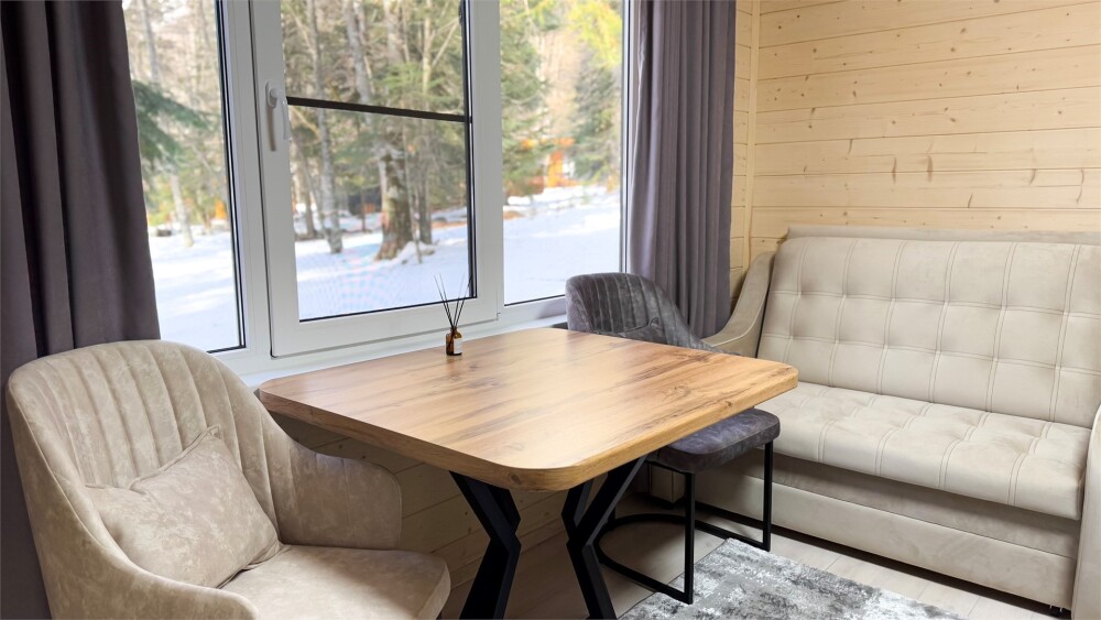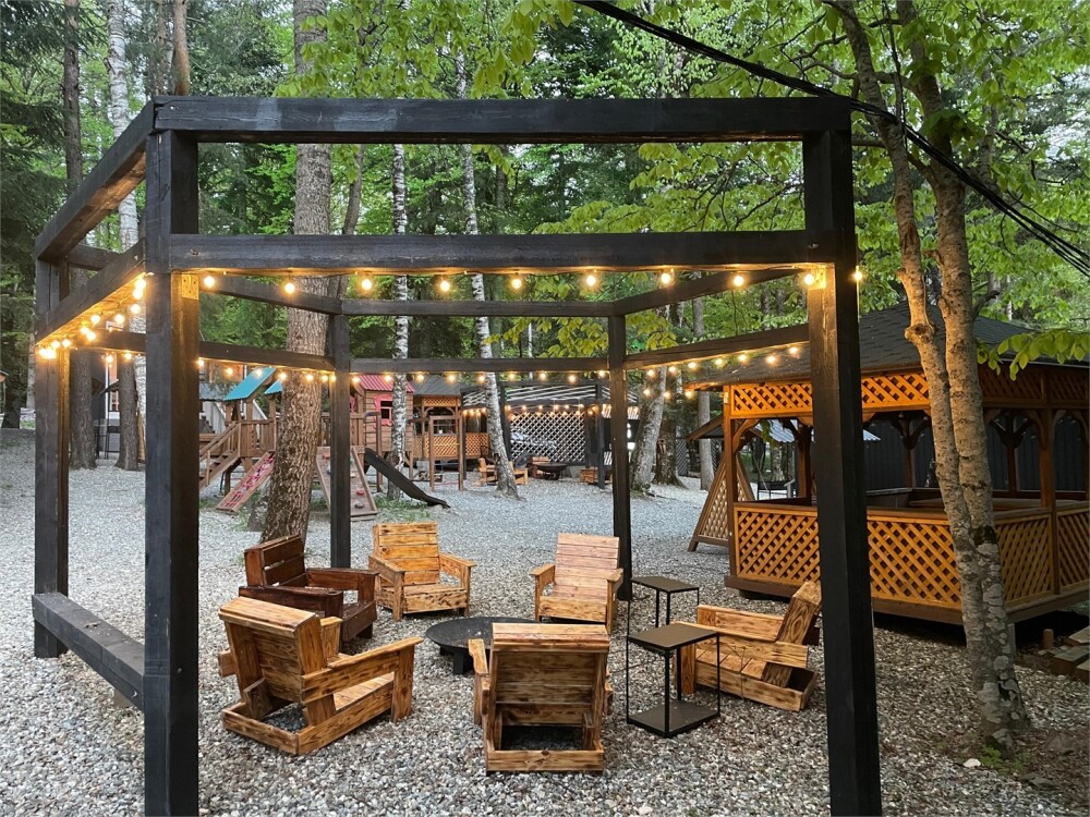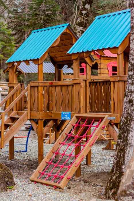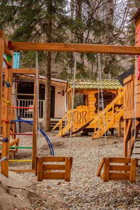На территории комплекса Вас ждут уютные беседки, где вы сможете провести время в кругу семьи или друзей, детская площадка с качелями, созданная специально для маленьких гостей. Каждый домик оснащен всем необходимым для комфортного проживания - бытовыми приборами и набором посуды, а также мангальными зонами, где Вы сможете приготовить вкусный шашлык на природе. Также есть комната для сушки и хранения горнолыжного снаряжения.
