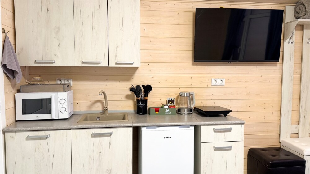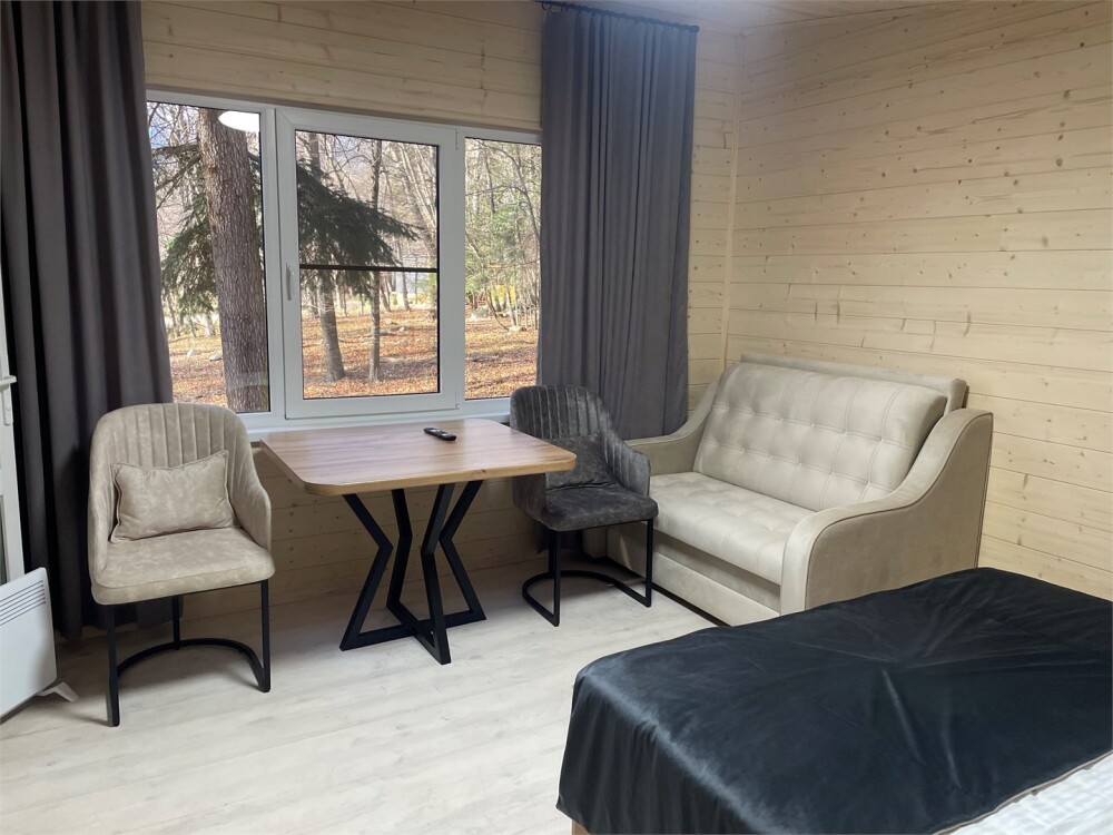 Уютный домик для двоих не ставит равнодушным никого. В домике имеется все необходимое для проживания а самое главное очень красивый вид из окна на хвойный лес.